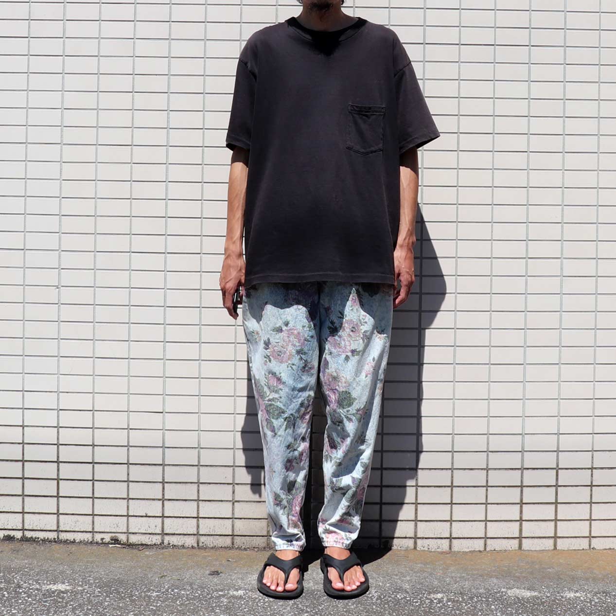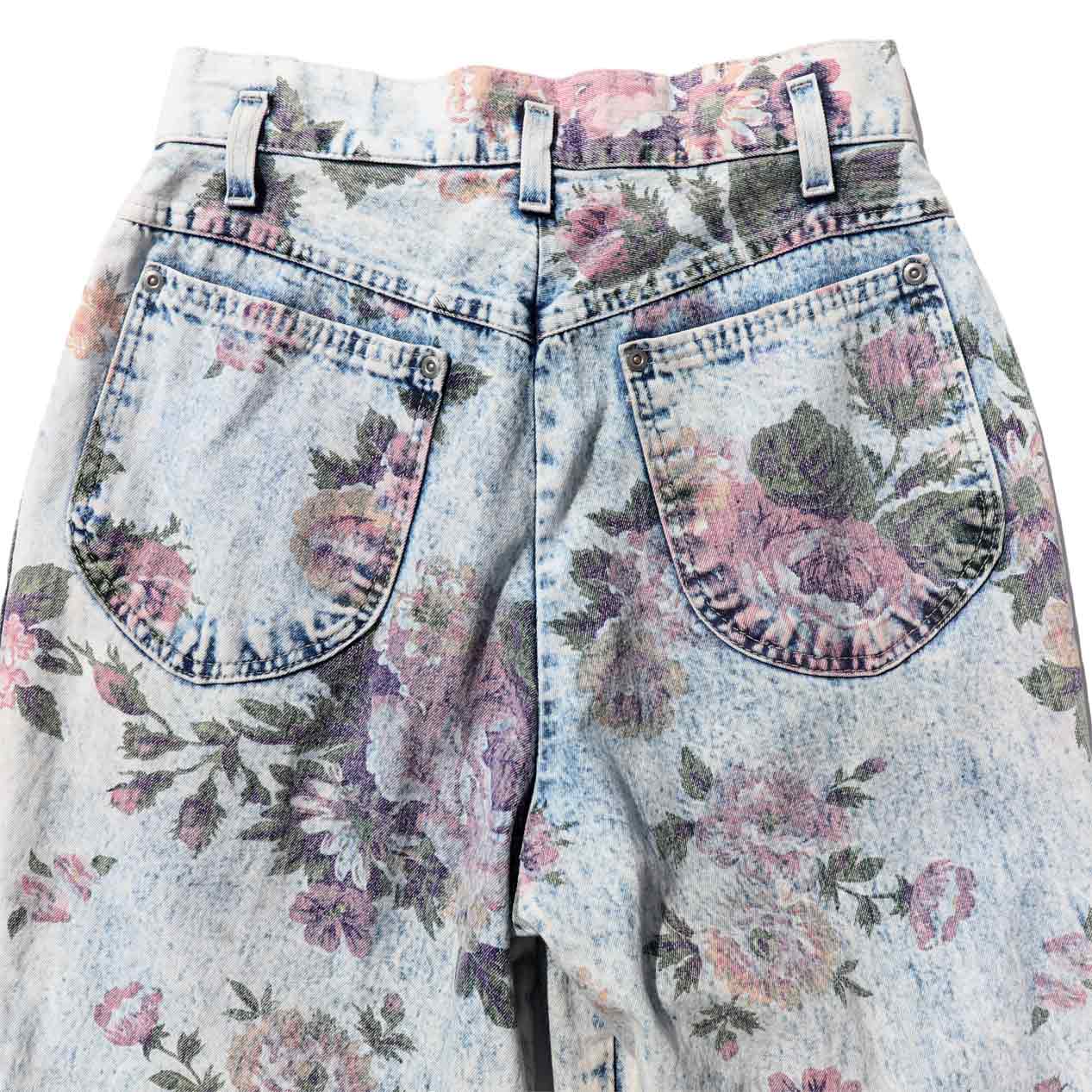 MODEL: FRENCH NAVY Flower Printed Denim Pants