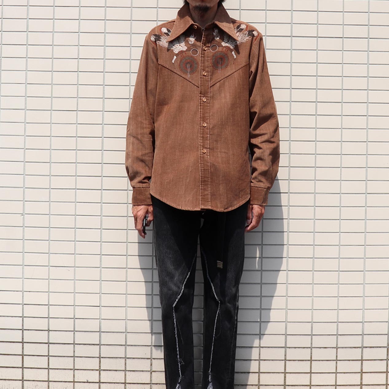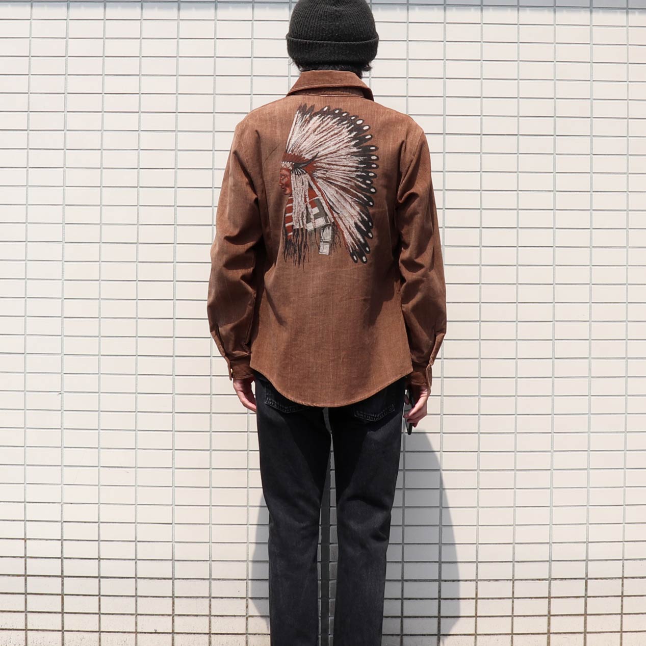 MODEL: KENNINGTON Indian Head & Dream Catcher Printed Corduroy Shirt