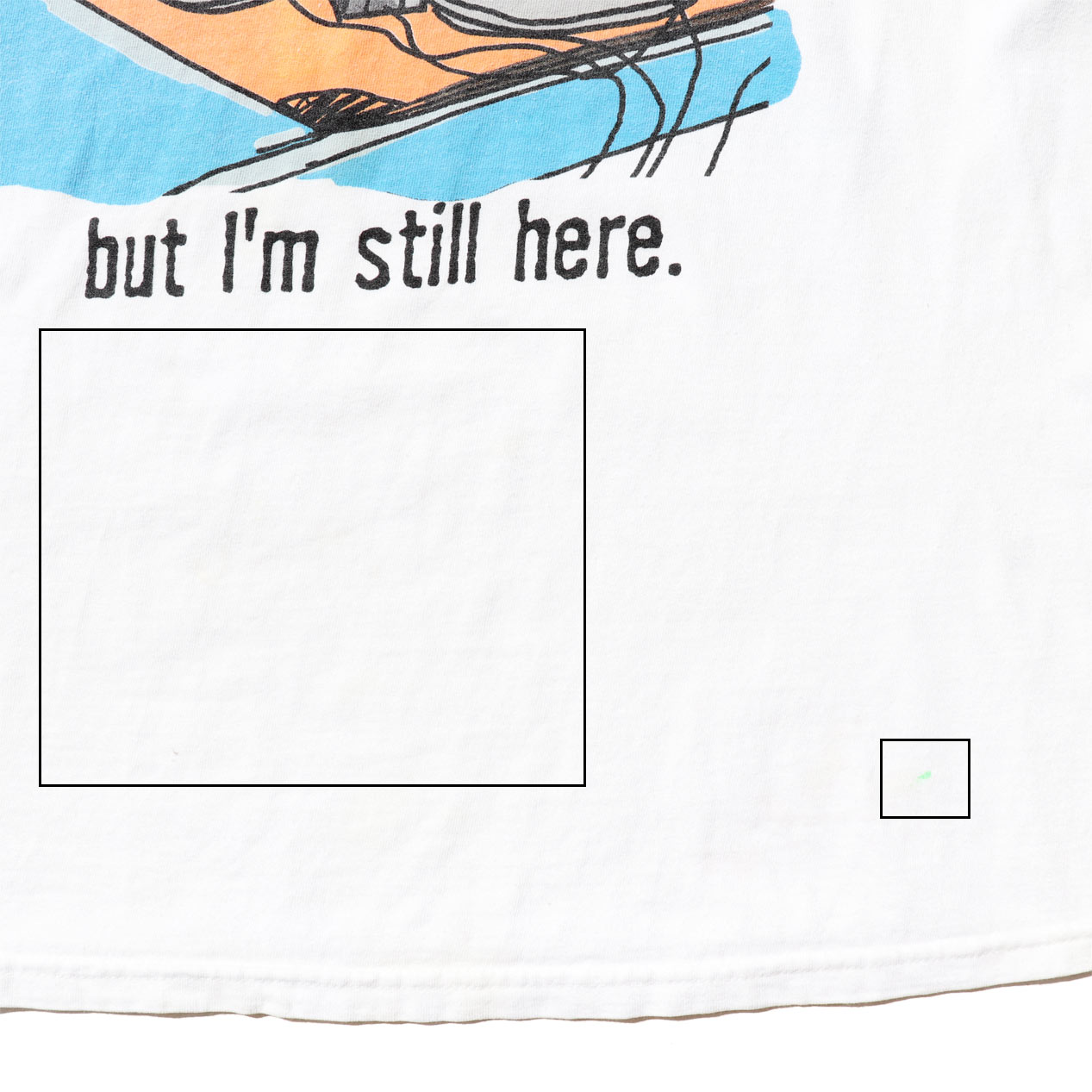 ・フロント: 腹部付近にごく薄い汚れ、裾付近にインクのような汚れ