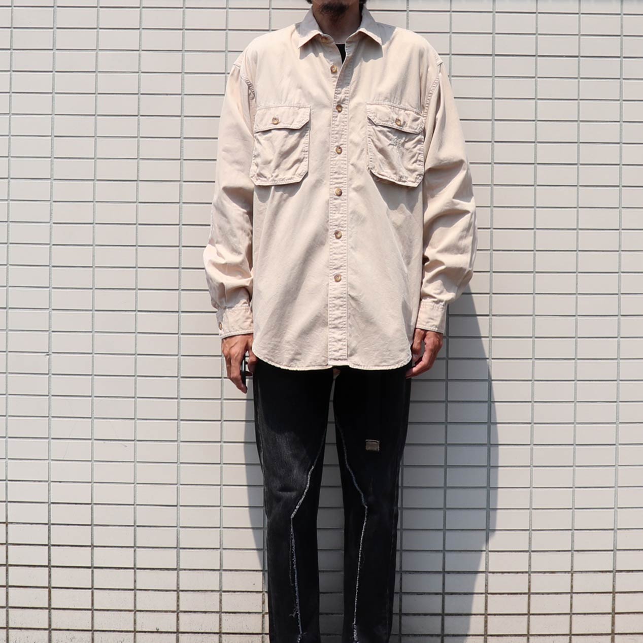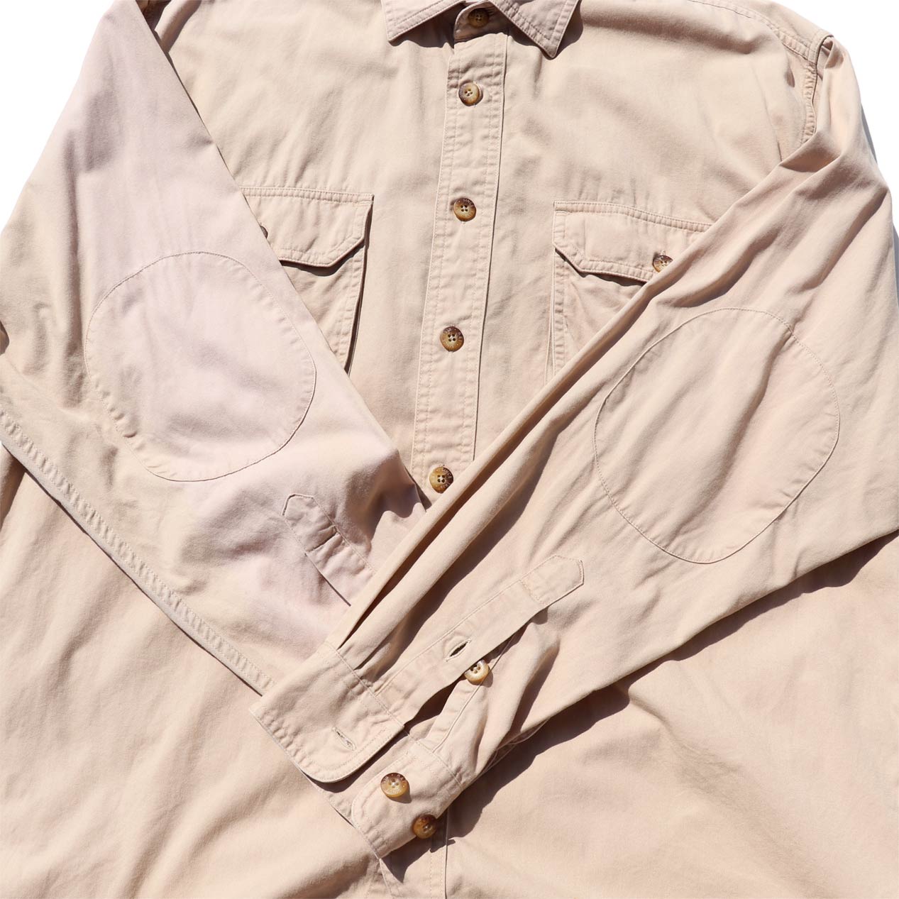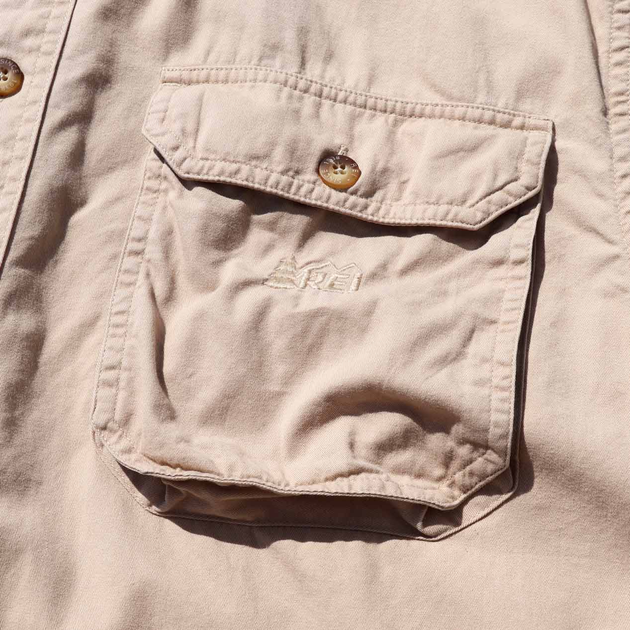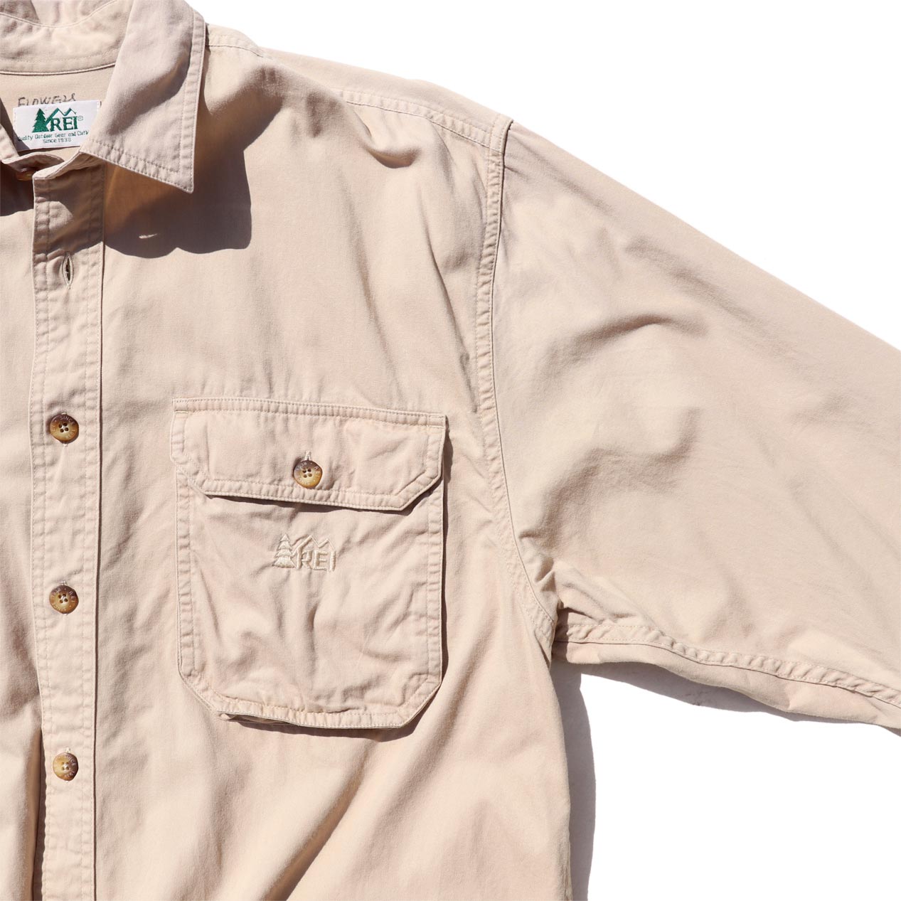 MODEL: REI Cotton Poplin L/S Shirt MADE IN: Hong Kong AGE: 80's SIZE: M COLOR: カーキ MATERIAL: コットン 100% COMMENT: 80年代 アールイーアイ