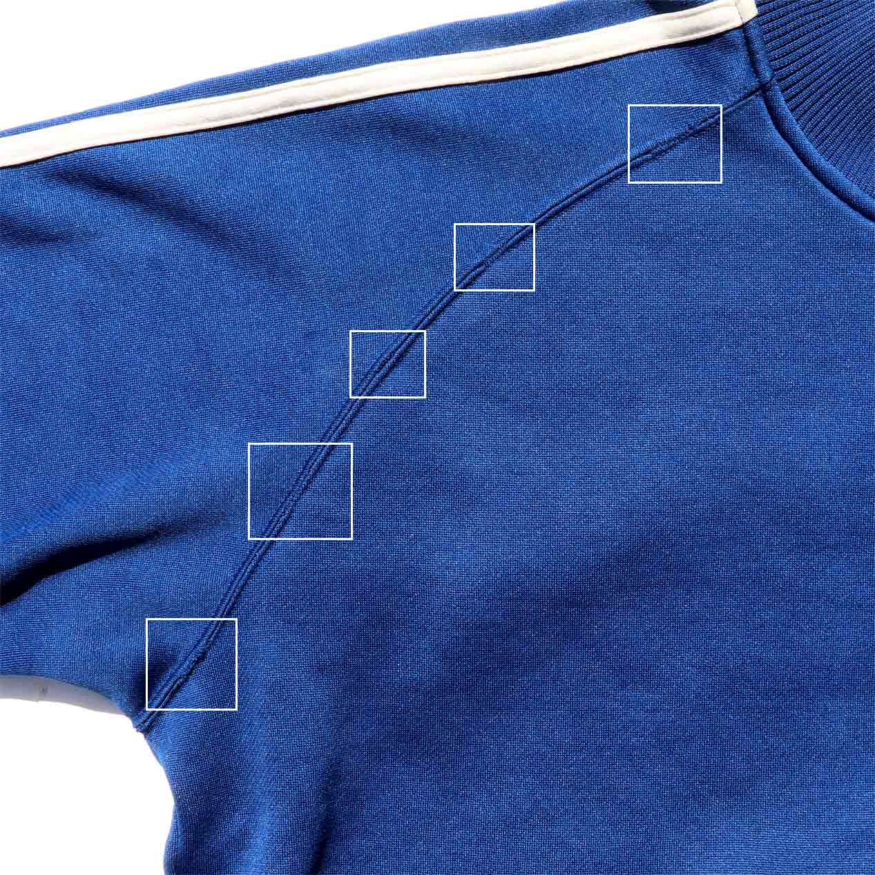 ・フロント: 右ラグラン線ほつれ手縫いリペア