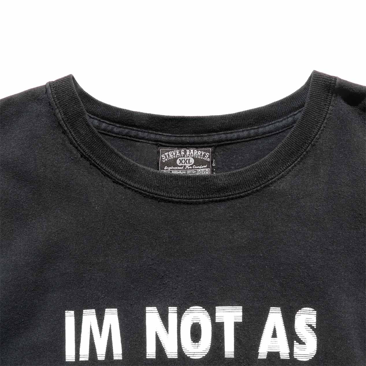MODEL: STEVE & BARRY’S “IM NOT AS THINK AS YOU DRUNK I AM” T-Shirt MADE IN: Honduras AGE: 00's SIZE: XXL COLOR: ブラック MATERIAL: コットン 100% COMMENT: 00年代 スティーブ&バリーズ Tシャツ