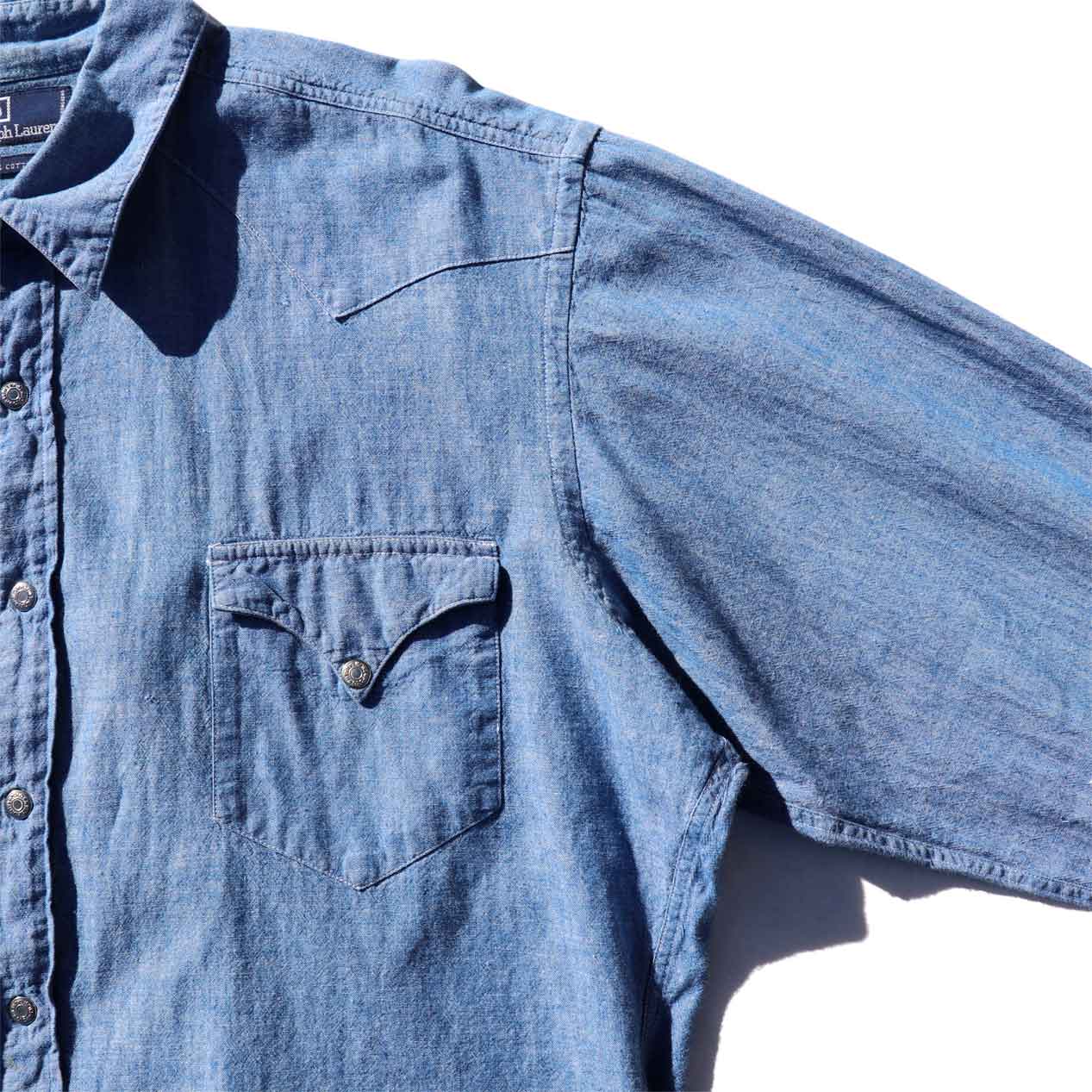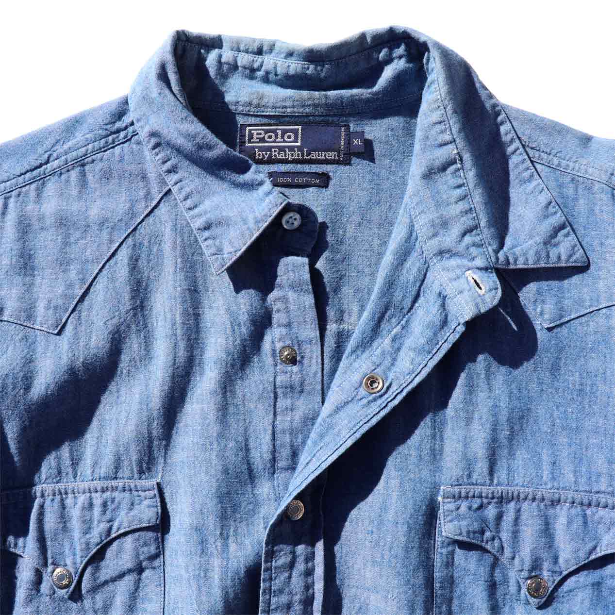 MODEL: POLO RALPH LAUREN Chambray Western Shirt MADE IN: Hong Kong AGE: 90's SIZE: XL COLOR: ブルー MATERIAL: コットン 100% COMMENT: 90年代 ポロラルフローレン ウェスタンシャツ