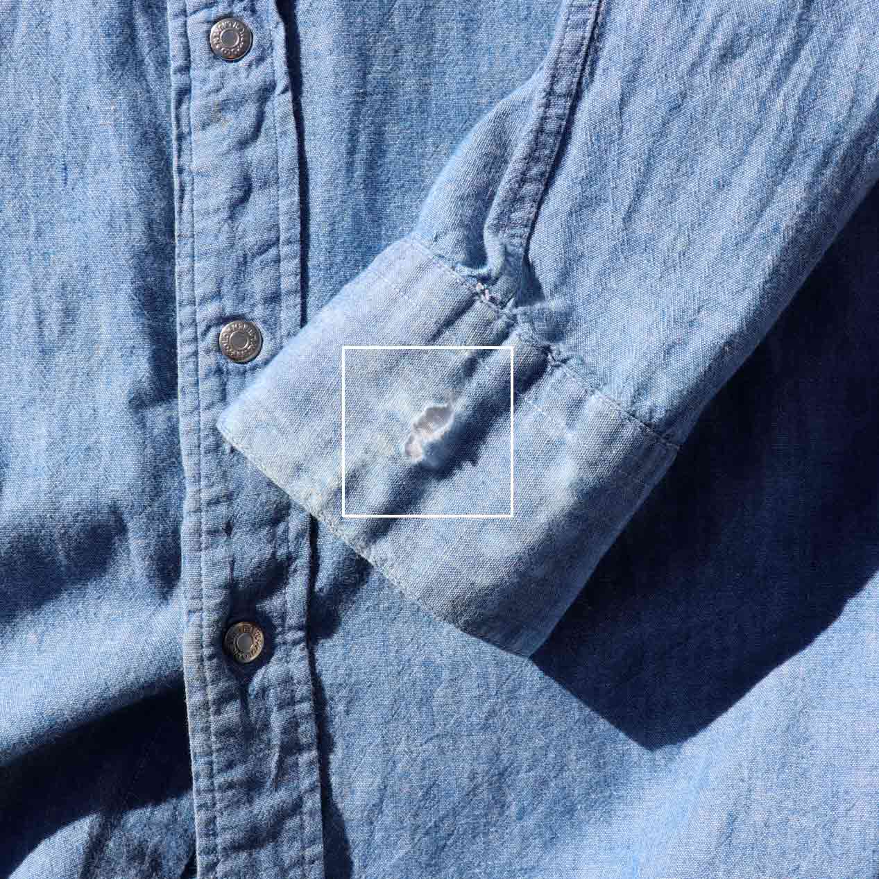 ・袖: 左袖に薄い汚れ、左袖カフスに破れ
