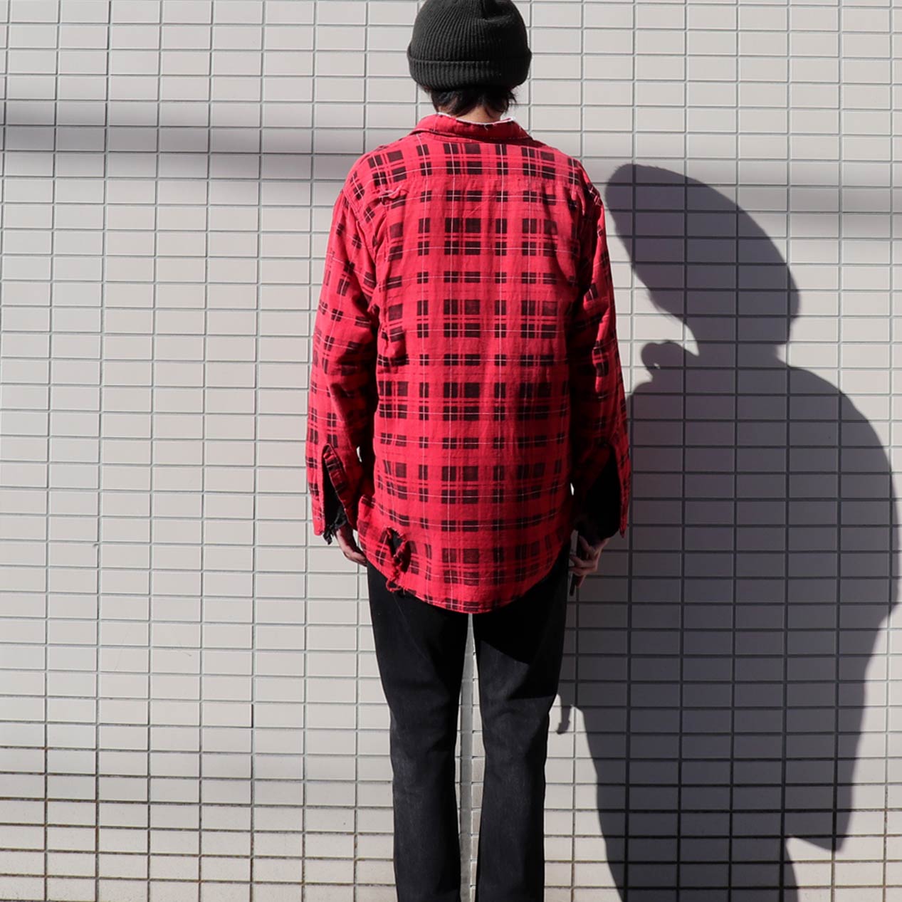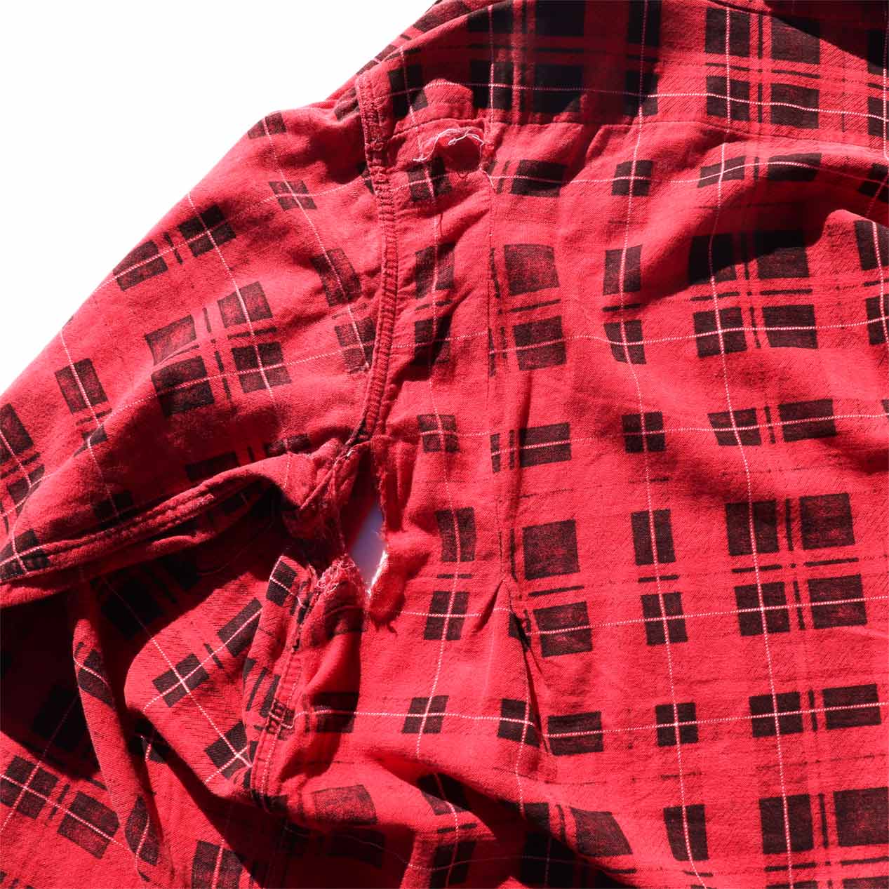 MODEL: PENNEY’S Print Plaid Damaged Flannel Shirt