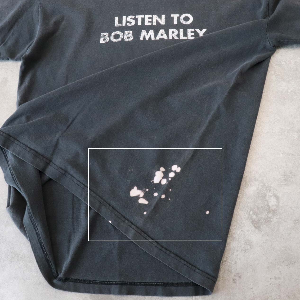 ・全体: 着用感、色褪せ、左裾にブリーチ跡