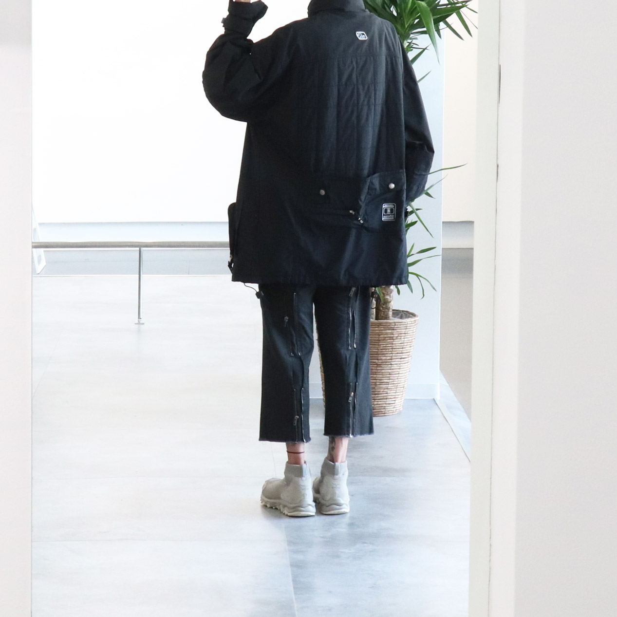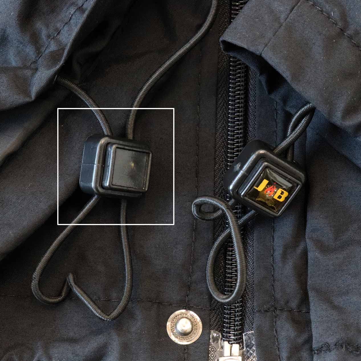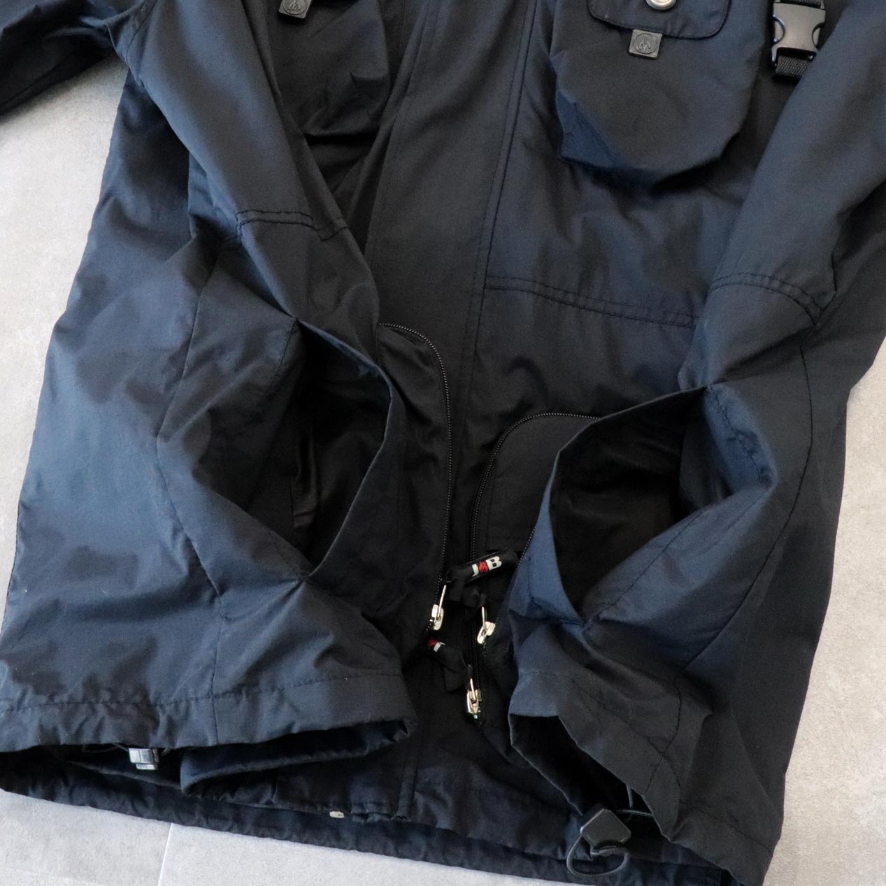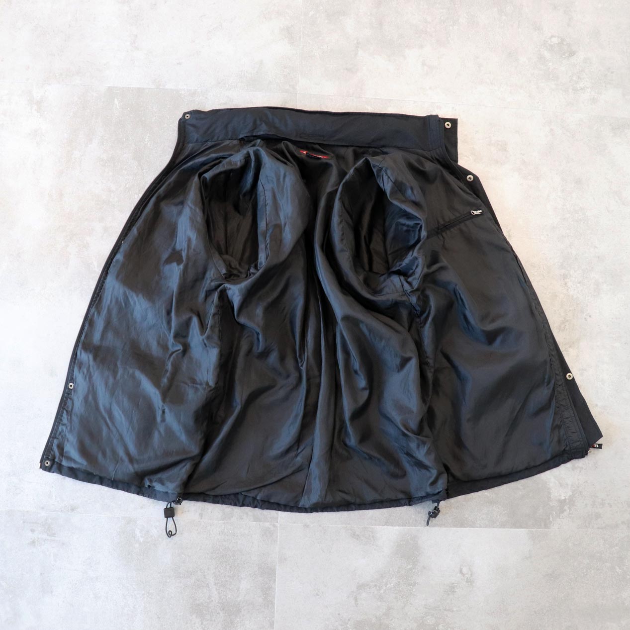 ・裏面: 身頃裾ドローコード装飾パーツ欠損(右側)