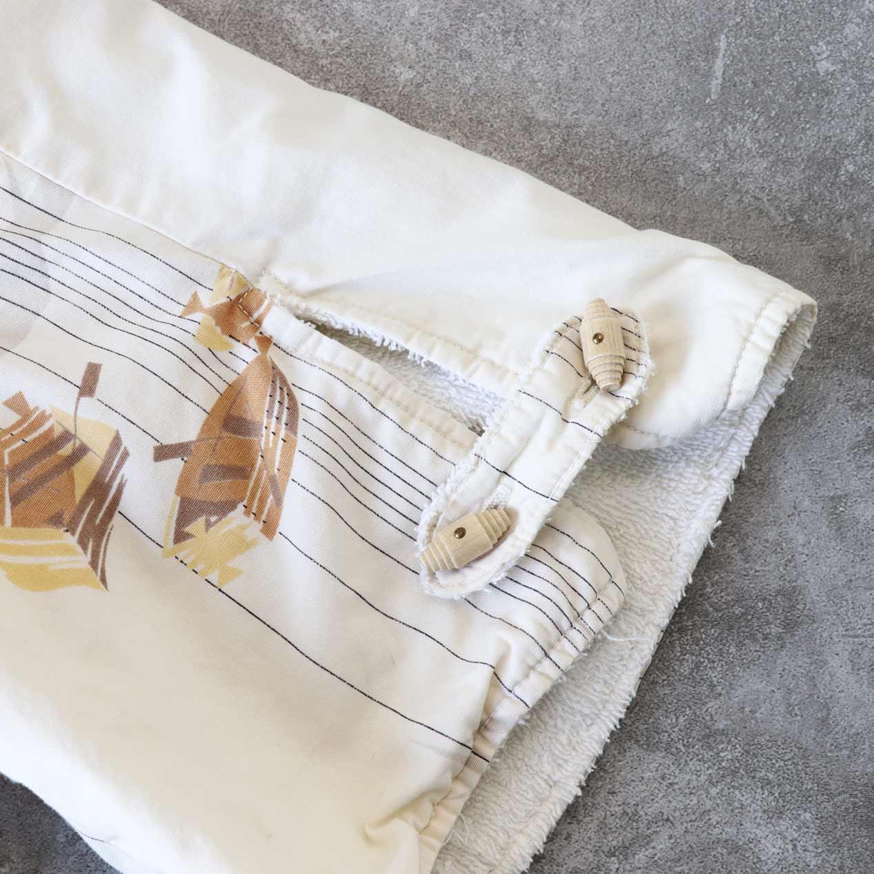フロント/袖先トグルボタン留め(スペアボタン付属)