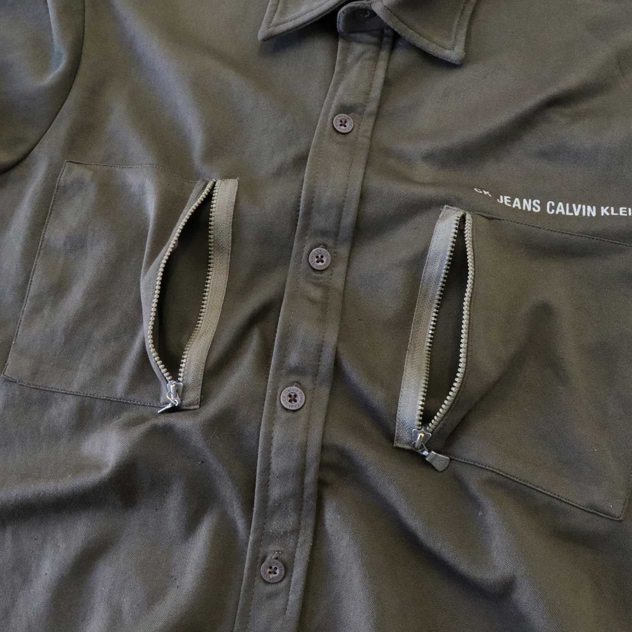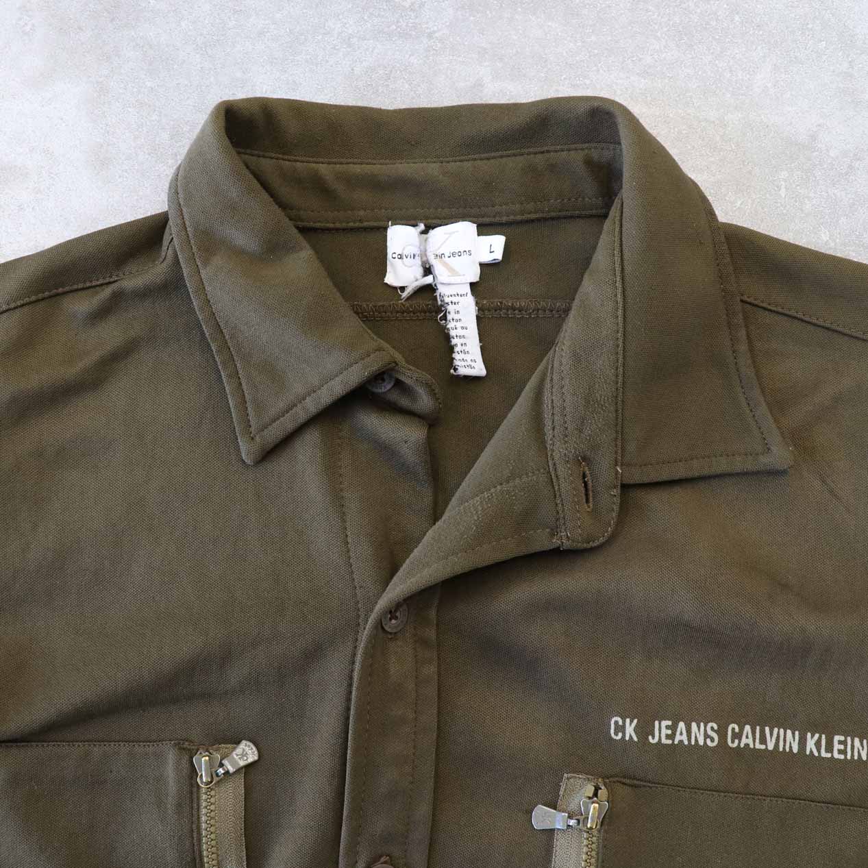 MODEL: CALVIN KLEIN JEANS Zip Pocket Jersey Shirt MADE IN: --- AGE: 90's SIZE: L COLOR: オリーブ MATERIAL: ポリエステル 100% COMMENT: 90年代 カルバンクラインジーンズ
