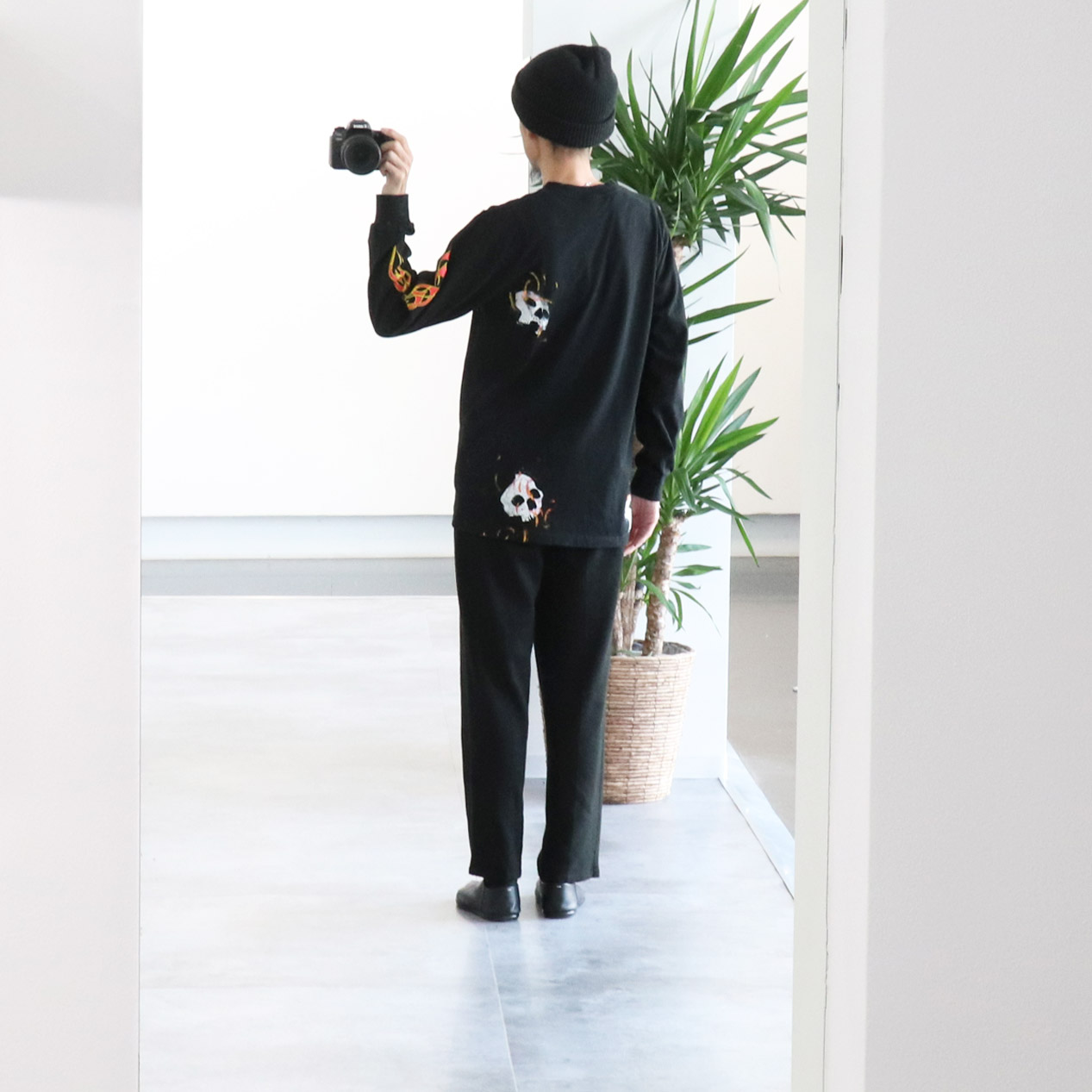 MODEL: UNKNOWN Multi Skull & Flames Printed L/S T-Shirt