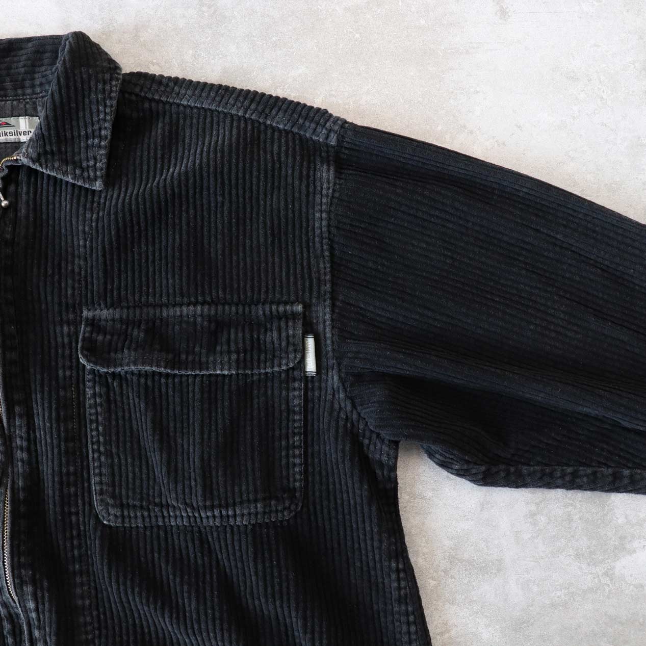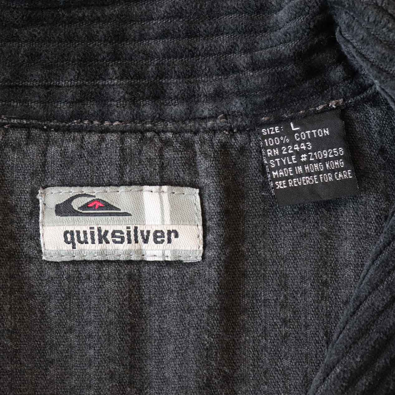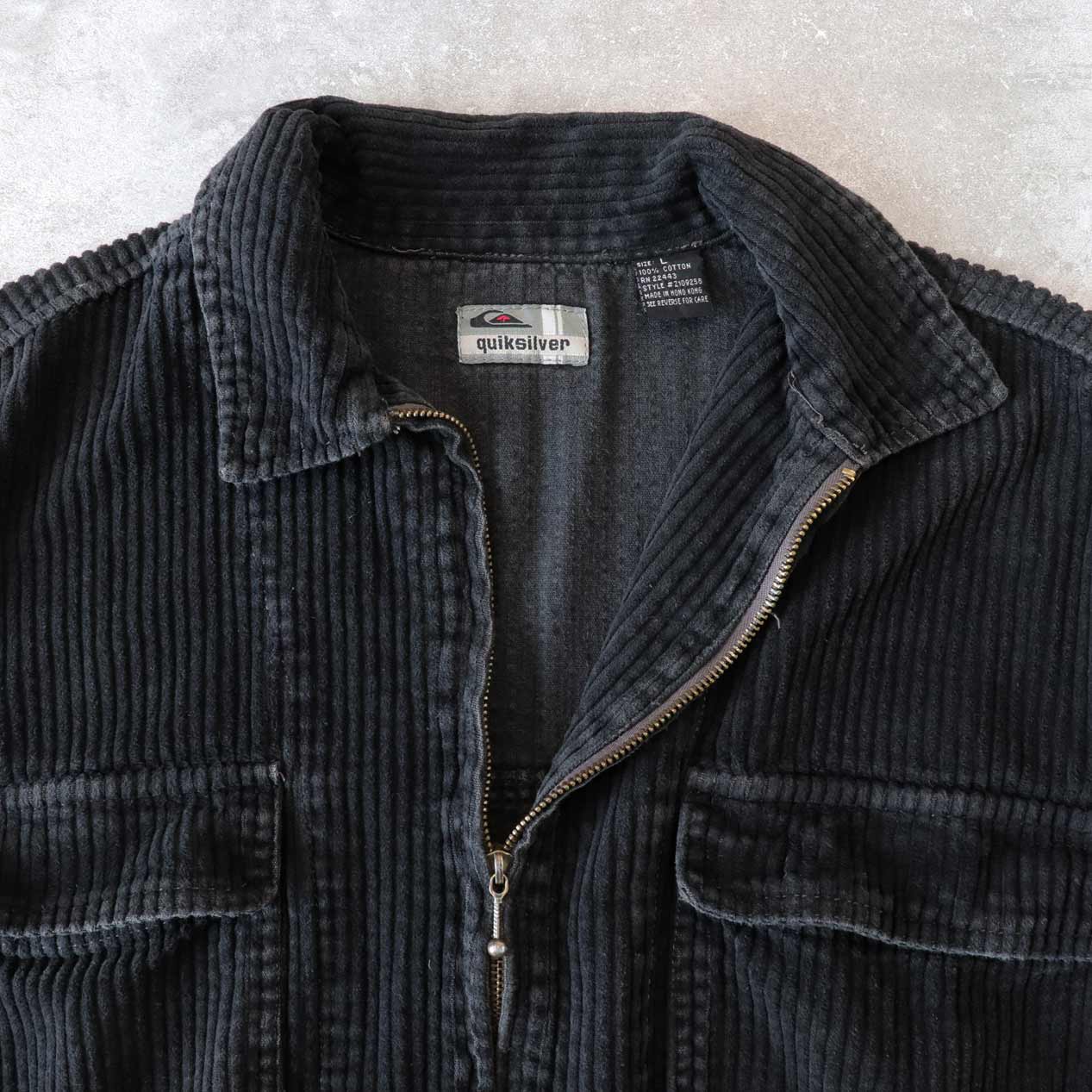 MODEL: QUIKSILVER Black Wide Wale Corduroy Zip Up Shirt MADE IN: Hong Kong AGE: 90's SIZE: L COLOR: ブラック MATERIAL: コットン 100% COMMENT: 90年代 クイックシルバー