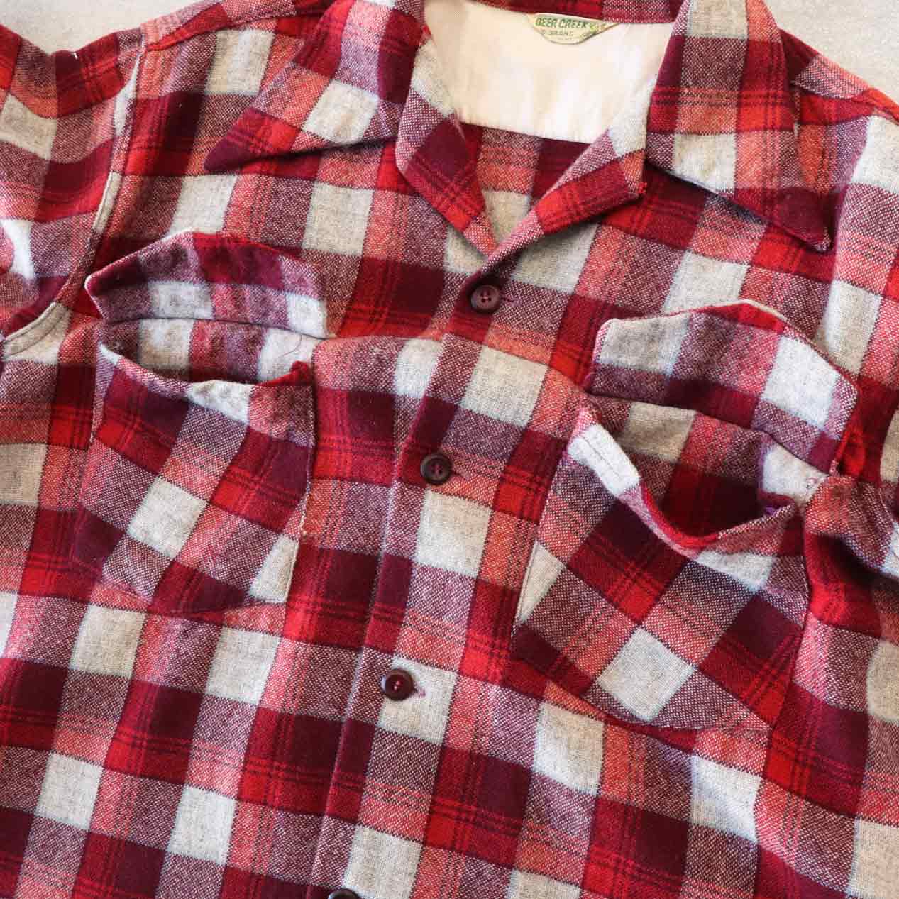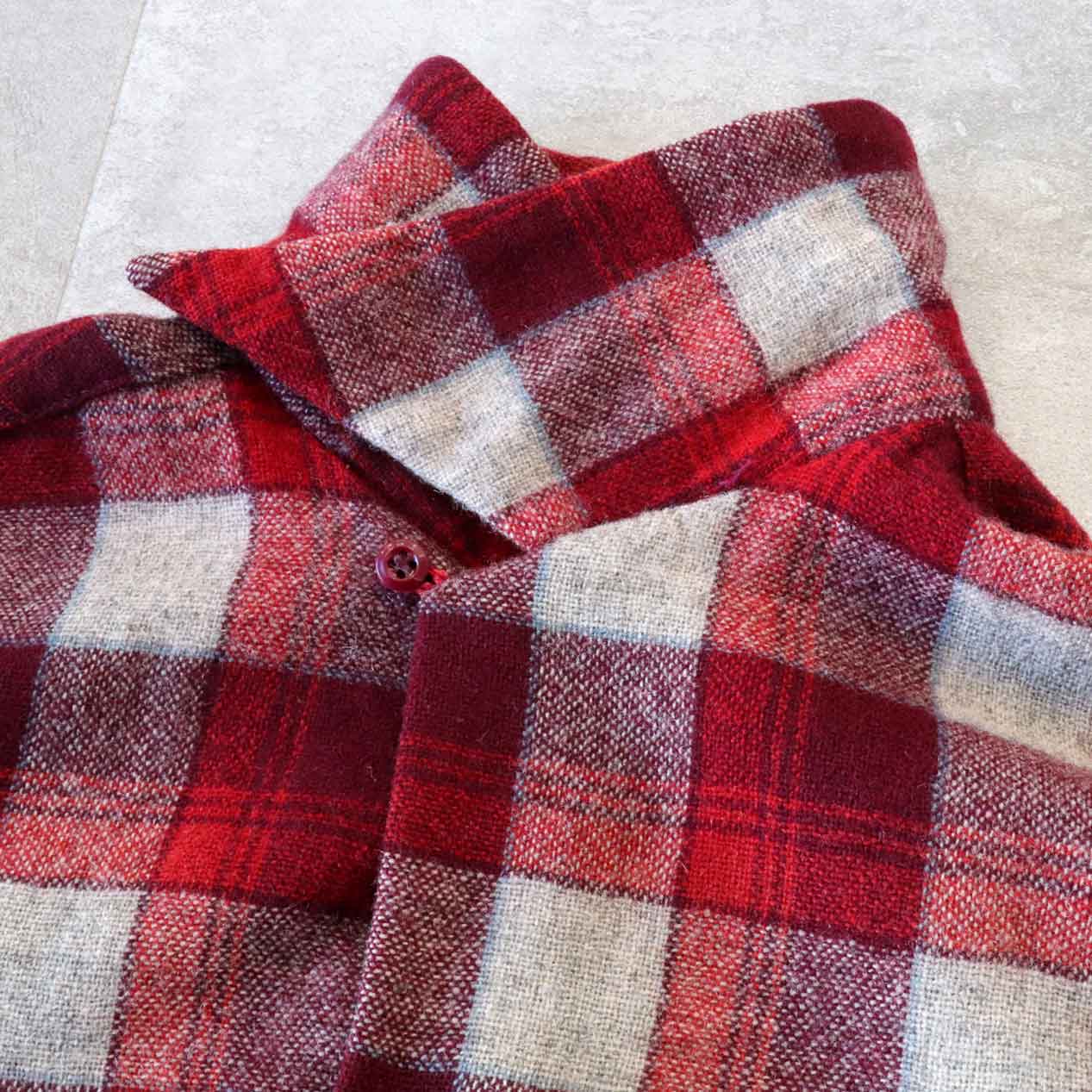 MODEL: DEER CREEK Woven Plaid Wool Open Collar Shirt