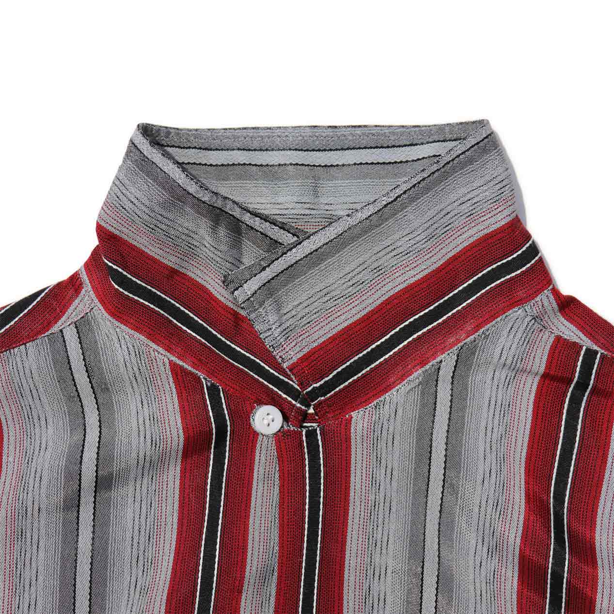 衿は芯無し、ループ留めのオープンカラー仕様。