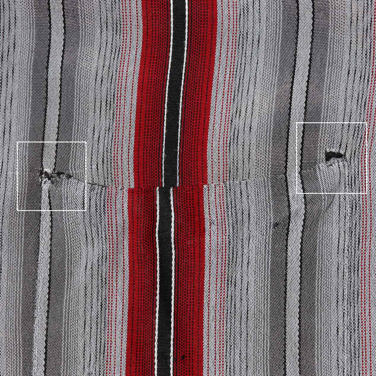 ・フロント : フロント見返し上部に穴、ポケット口両端にほつれ、ボタン裏にほつれ、右脇にスレ