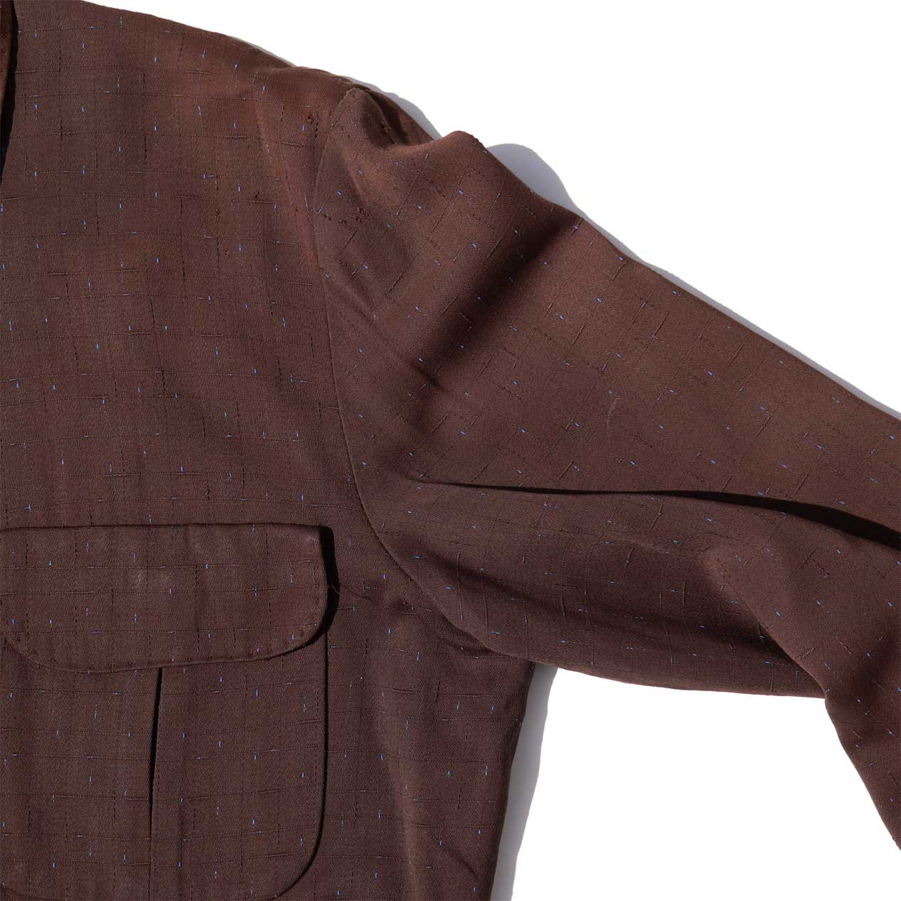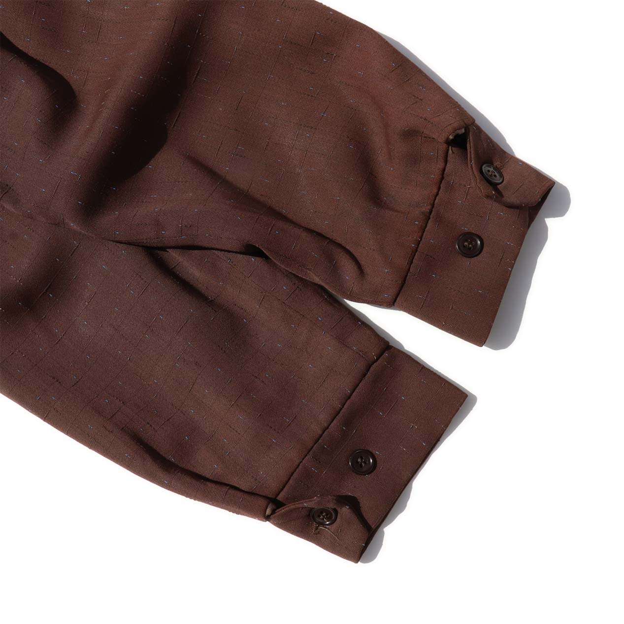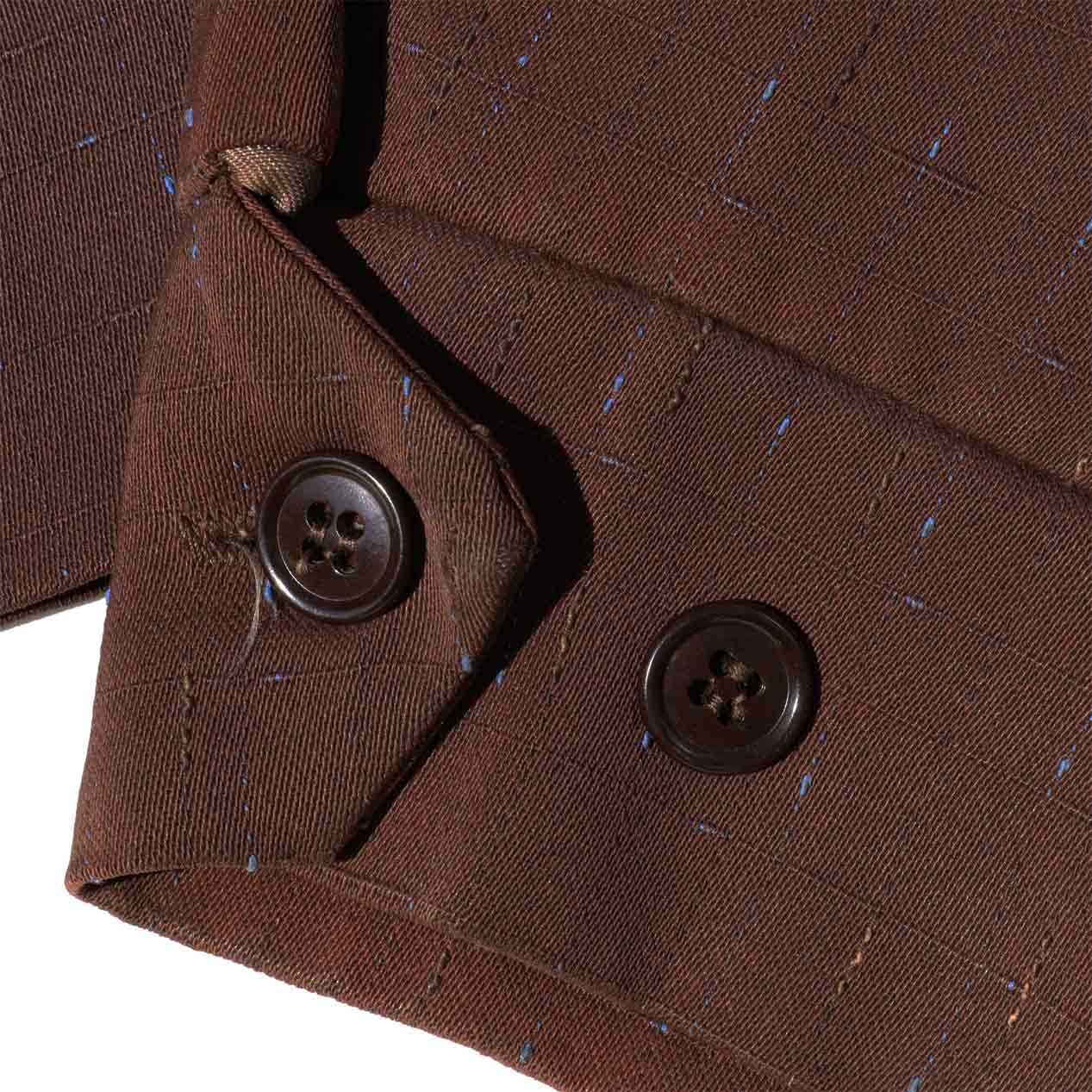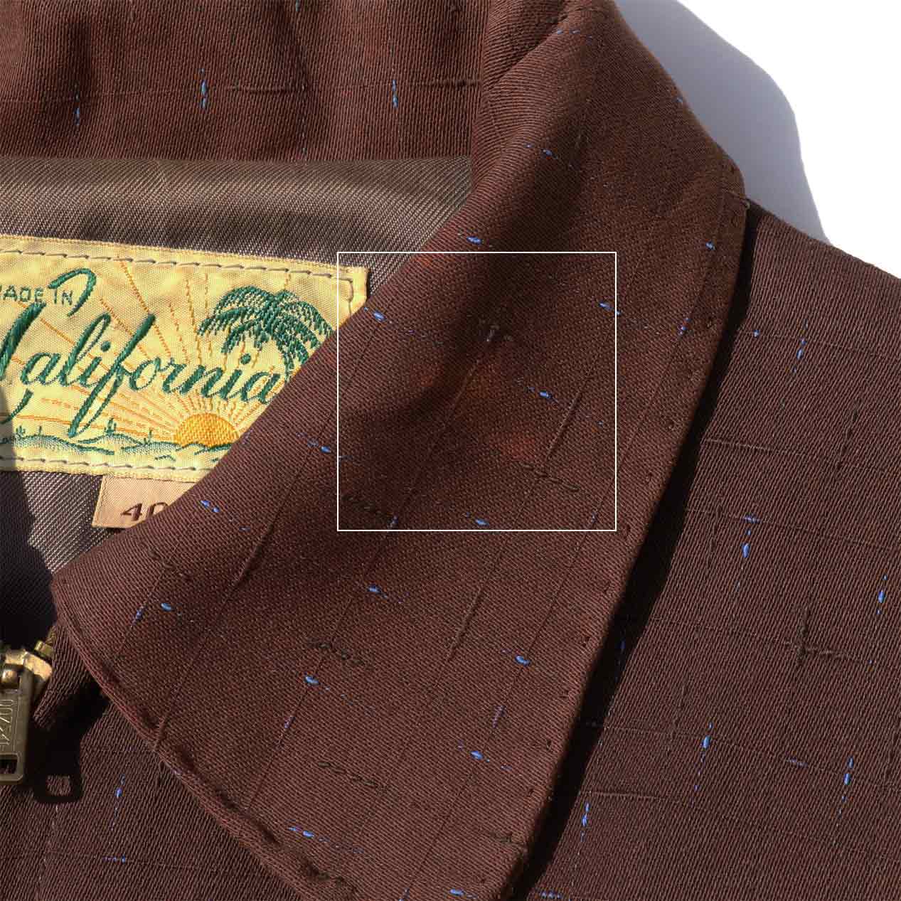 MODEL : MADE IN CALIFORNIA カスリネップ レーヨンギャバジンジャケット MANUFACTURE : Made In U.S.A. AGE : 50's SIZE : 40 COLOR : ブラウン MATERIAL : --- (おそらくレーヨン) COMMENT : 50年代、MADE IN CALIFORNIAのギャバジンジャケットです。