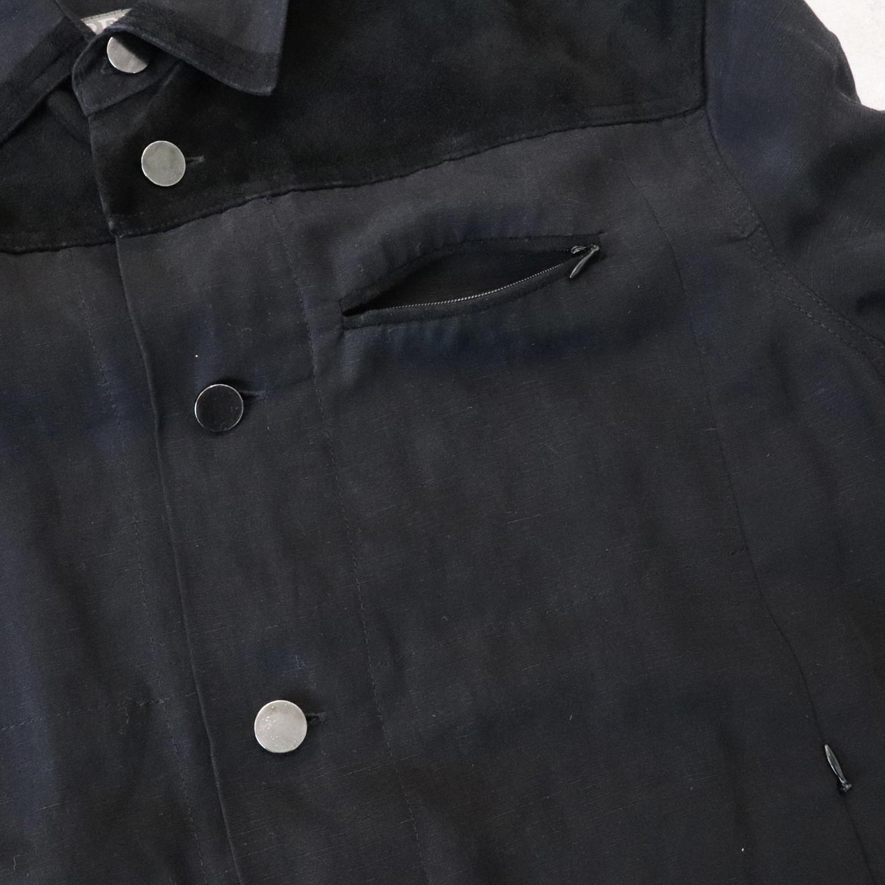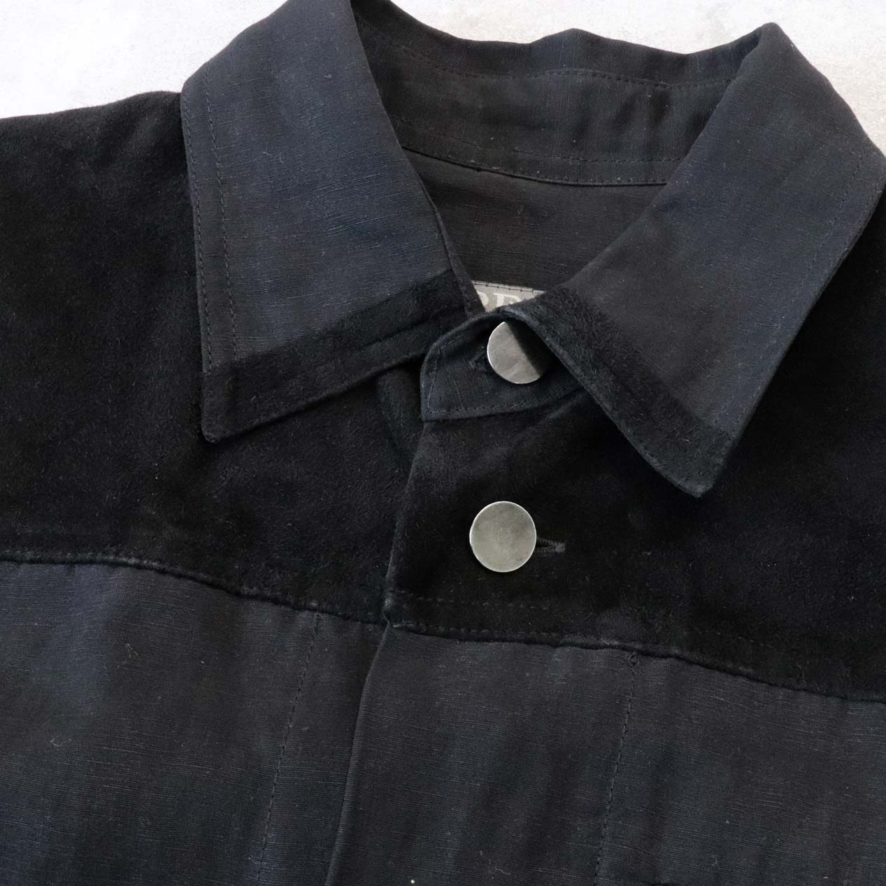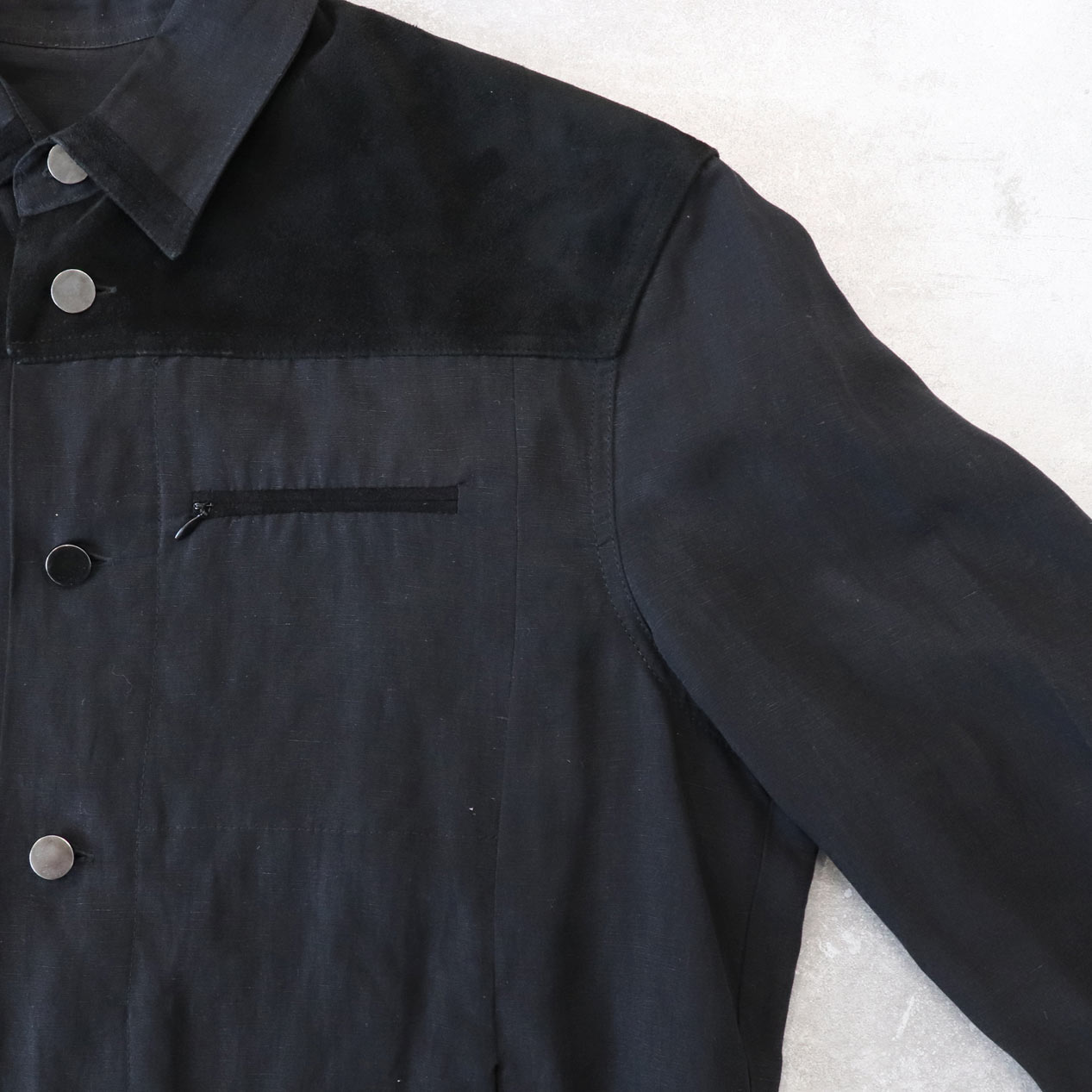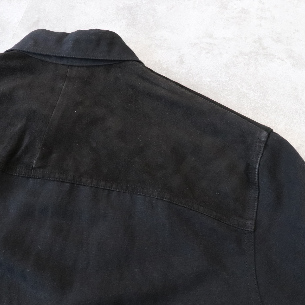 前後ヨーク/襟先/左胸ポケット玉縁 スエードレザー切替