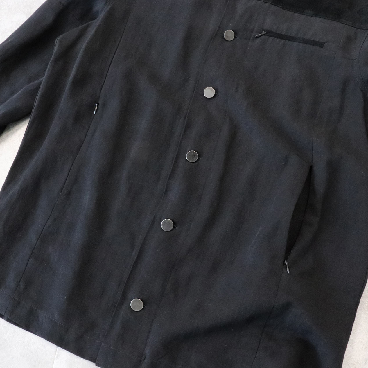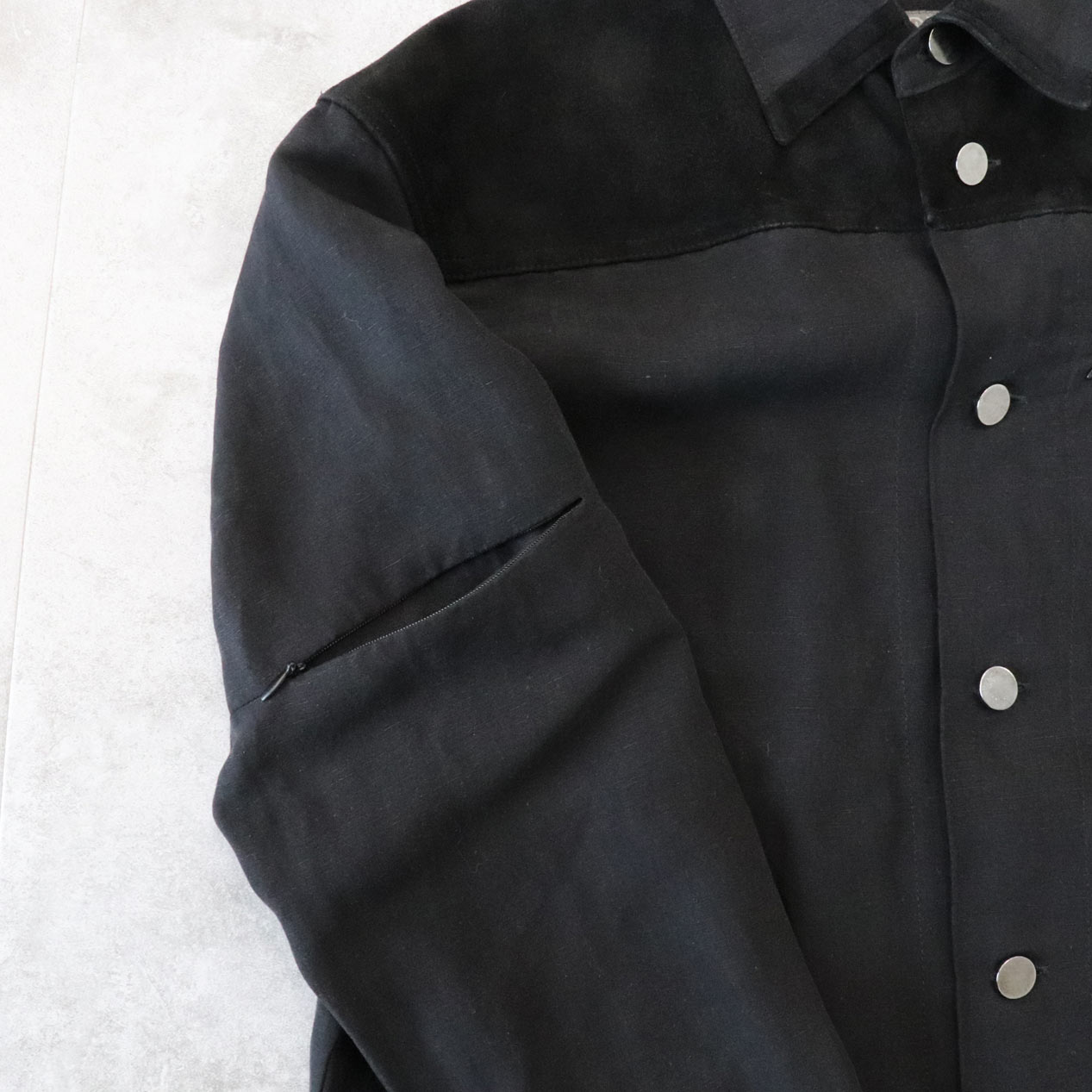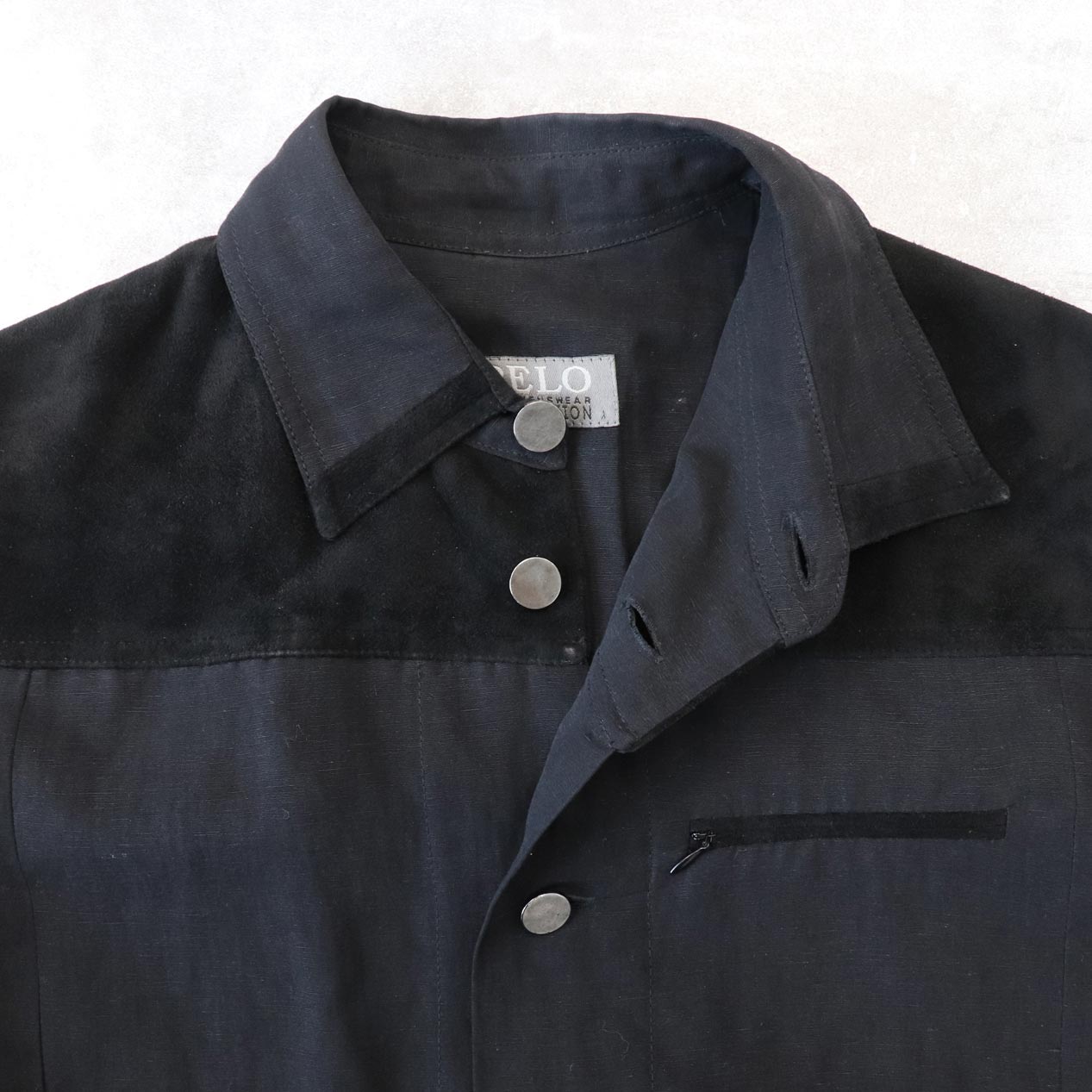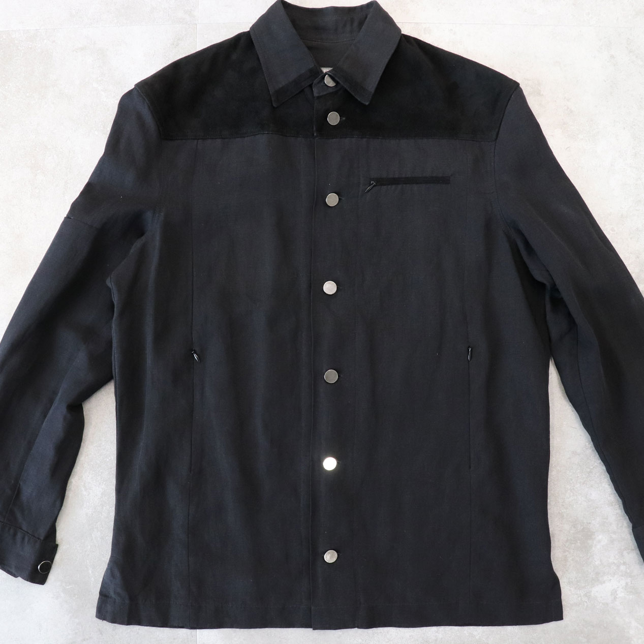 前後ヨーク/襟先/左胸ポケット玉縁 スエードレザー切替