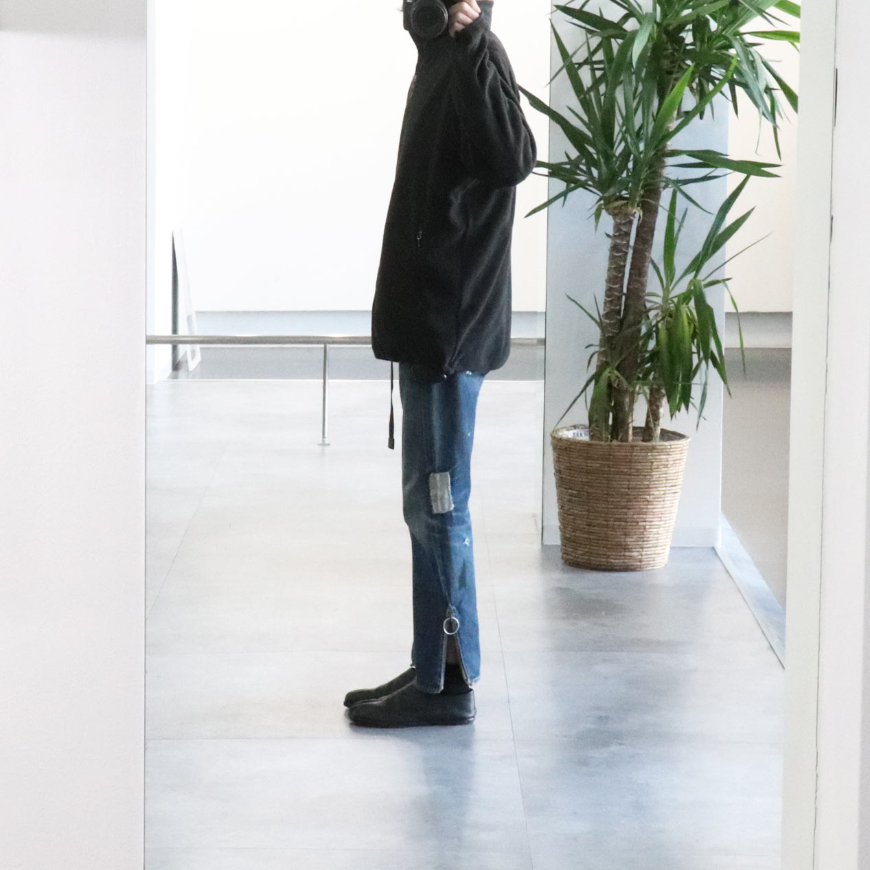 ハンドポケット、左腕にジップポケット