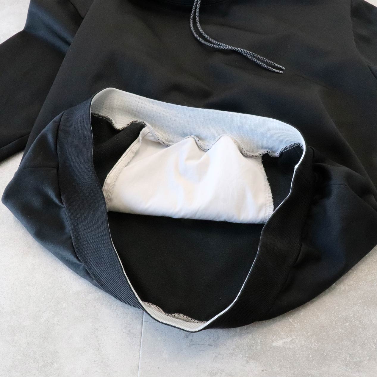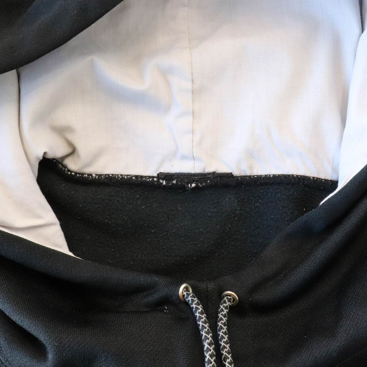 ハイネックフード/フード裏布帛切替