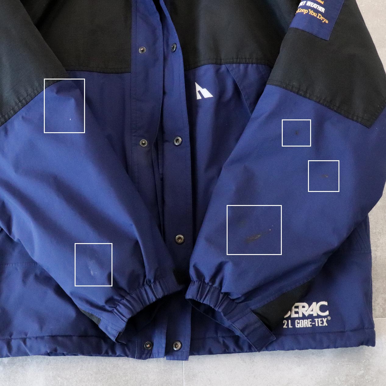 左腕にGORE-TEXロゴ刺繍パッチ